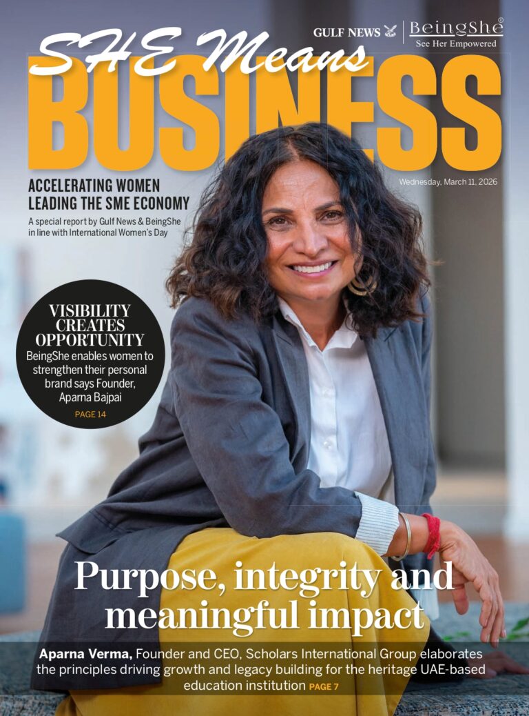 The SHE Means Business initiative by BeingShe is designed to empower and support women entrepreneurs in the UAE by providing a platform for visibility, storytelling, and recognition. Through its collaboration with Gulf News, the magazine continues to amplify the voices of female founders, SME leaders, and women business professionals who are shaping the future of entrepreneurship.